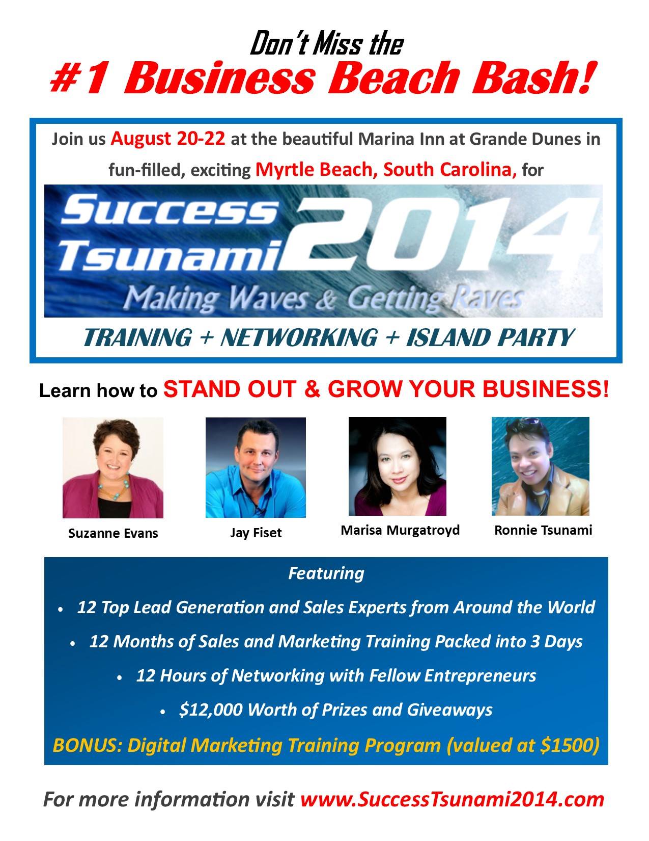 This event is specifically designed for coaches, authors, consultants and trainers. If you are among this groups of brilliant people working on growing your business you MUST consider, juggling your life, cashing in your airmiles and get your butt to the Success Tsunami!